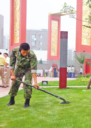 安保人员正在进行金属探测。