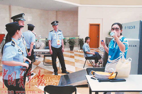 7月27日,记者跟随上海警方,亲自体验了一下上海体育场、华亭宾馆等奥运场所的安检工作。据粗略统计,上海赛区共设置了30余套X光物品检查仪器,90余扇安检门,以及多套车辆安检系统。