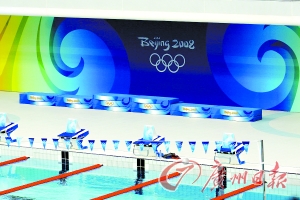 还有10天,2008年北京奥运会即将开幕,如今每个人、每个场馆都进入了最后的备战状态,尤其是比赛场馆基本都处于封闭状态。今天,借着难得的中、日花样游泳公开训练机会记者有幸再次走进国家游泳馆——“水立方”。由于中、日两队临时改变训练场,这倒让记者得以好好领略了一下现在的“水立方”内部。跳水台后面黄色的“祥云”背景、游泳池旁的领奖台以及几个巨大的观赛显示屏,加上记者席上的液晶显示器,记者发现,与年初的国际泳联跳水世界杯时相比,这里变了很多。“现在我们真正可以说随时等着比赛了。”“水立方”的看台席主管程秀丽信心十足地表示。