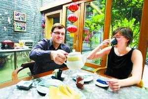 彼得与西蒙娜夫妇非常期待来中国旅游,来前,西蒙娜还特别到柏林大学里学习了10个月的中文。她告诉记者,不想住在宾馆饭店的酒店里,千篇一律没有特色,希望住在北京市民家里有家庭气氛,还能体会不同国家人们的生活。“在这样精致的四合院里吃着可口的早餐,抬起头就是满树的石榴果,是我们喜欢的度假方式”。