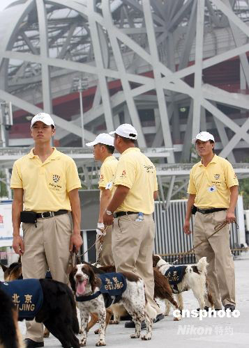 第29届夏季奥运会开幕式彩排在北京国家体育场“鸟巢”内封闭进行,武警、特警现场戒备,保安严密。 中新社发 武仲林 摄