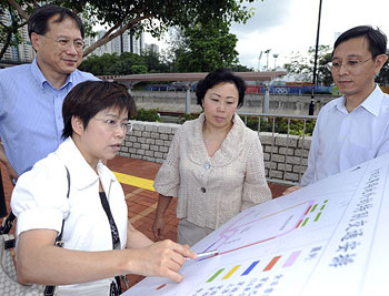运输及房屋局局长郑汝桦(中)到沙田源禾路,视察奥运马术比赛的交通运输安排。(图片来源:香港特区政府网站)