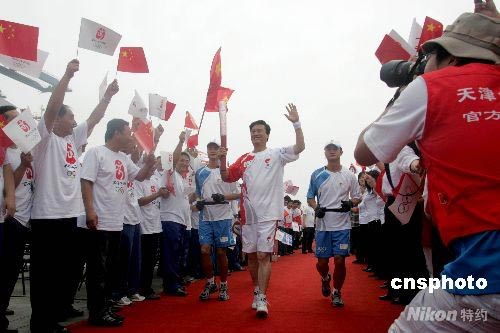 北京奥运火炬在天津传递 光芒照耀“经济新级”