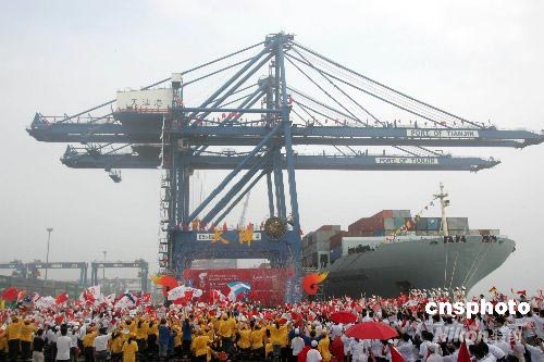 8月1日,奥运火炬天津滨海新区站传递,起跑仪式在中国北方最大港口、新亚欧大陆桥东端桥头堡——天津港举行。中新社发 田齐 摄