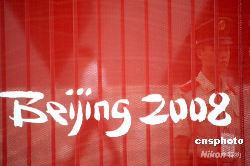 8月2日,北京奥运会开幕式第二次彩排在“鸟巢”进行,武警在体育场围栏后站岗值勤加强安保力量。 中新社发 杜洋 摄