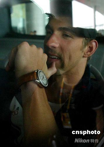 8月4日,美国游泳队一行40余人抵达北京,开始北京奥运会征程,美国游泳神童菲尔普斯也随队抵京。 中新社发 富田 摄