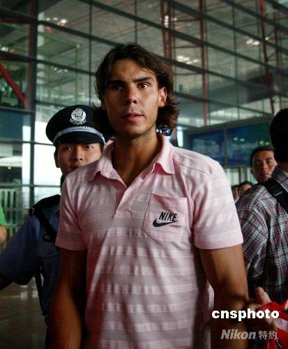 8月4日,有着“红土之王”称号的西班牙网球名将纳达尔抵京,开始北京奥运会征程。中新社发 富田 摄