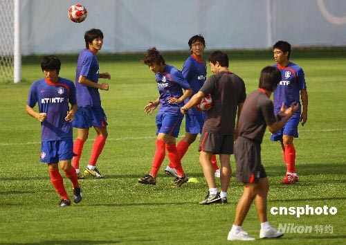 8月5日,参加北京奥运会足球比赛的韩国国奥队在秦皇岛进行开放训练。8月7日,韩国国奥队将在秦皇岛首战喀麦隆队。 中新社发 刘新 摄