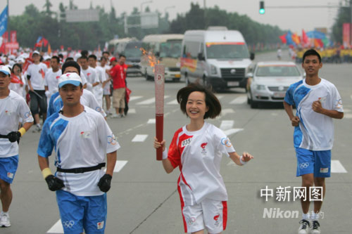 中新网8月5日电 凤凰卫视当家花旦陈鲁豫今天(8月5日)在四川成都传递奥运火炬。