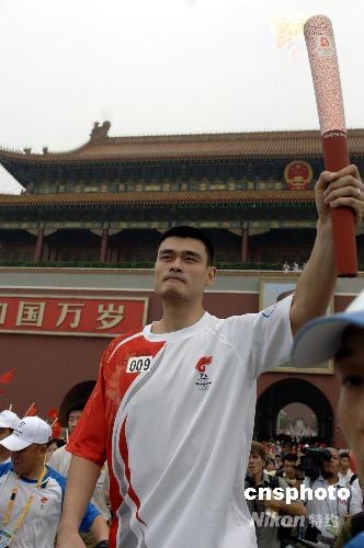 图:“小巨人”姚明北京传递祥云火炬