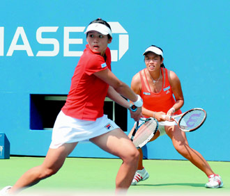 詹咏然、庄佳容自去年澳网开始在国际网坛上发光,两人搭档后的第一个大满贯就成功夺银,美网再度杀入决赛,虽然与冠军金杯相隔一步,但两人早已证明“黄金双娇”不是随便玩玩,2007年以来已到手4座WTA巡回赛双打冠军。