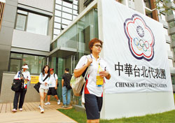 中华台北队的人数比较少,虽然住了1至4楼,但每个楼层只有两个居住单位,不像对面的大陆队占了半幢大楼,且每个窗口都挂上五星旗。中华台北代表团也在一楼入口处外墙挂上一幅长、宽各数公尺的特大号中华台北奥委会会旗,显得非常醒目;经过的人大都会驻足观看,甚至拍照留念。
