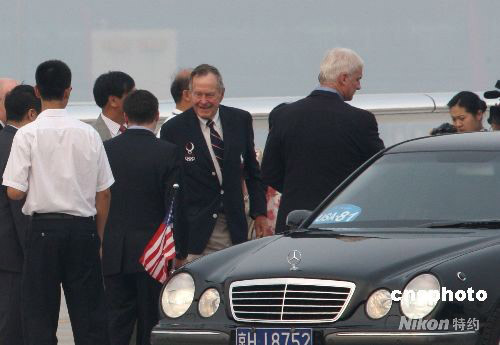 2008年8月6日16点57分,美国前总统老布什到达北京首都机场,前来参加第29届北京奥运会开幕式及相关活动。 中新社发 北有宋乔 摄