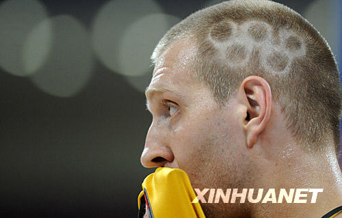 NBA明星德男篮队员诺维茨基剪个"五环"头
