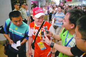 一直在首尔参加热身赛的俄罗斯跳水队8月4日有4名队员到达,昨日,剩余的6名队员全部到达北京。等待萨乌丁的过程中,不断地有志愿者对记者说:“等下能帮忙找萨乌丁要个签名吗?”而且,这次追星的人群不再是年轻人的天下,一些中年人也参与到签名、合影的阵营之中。