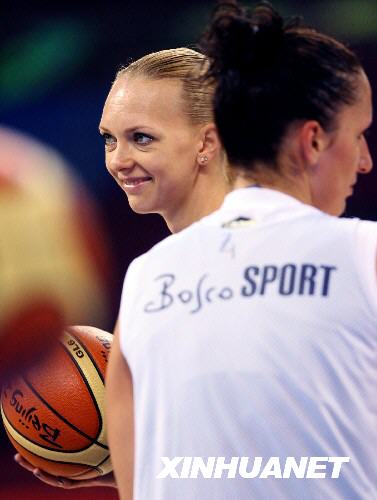 8月7日,俄罗斯队球员奥西波娃在训练中。新华社记者孟永民摄