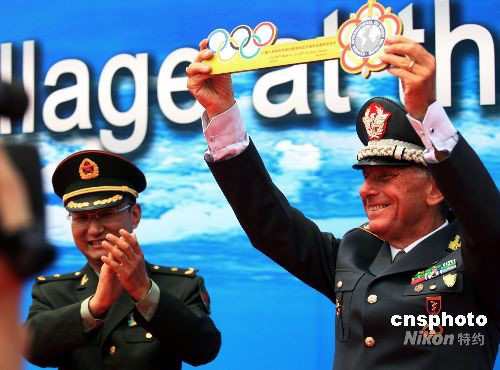 图:国际军体村开村仪式上递交村门钥匙