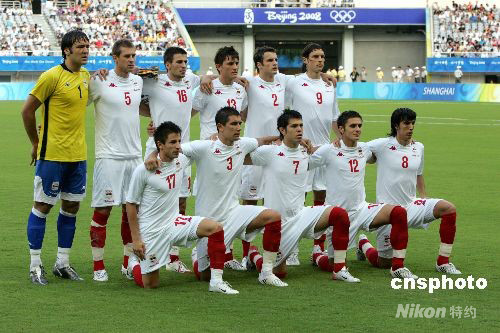 8月7日,北京奥运会上海足球分赛场男足预赛开赛,首场比赛由澳大利亚对阵塞尔维亚。中新社发 汤彦俊 摄