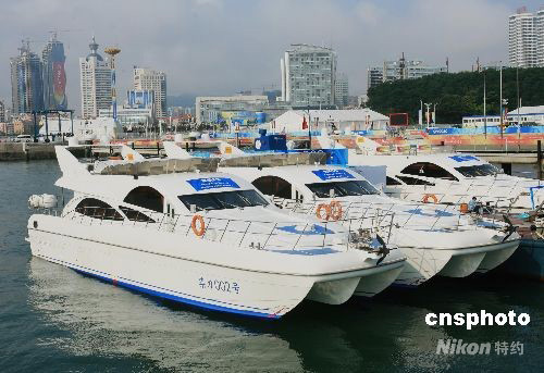 8月6日,奥帆赛6艘豪华观众船驶进奥帆中心辅港池,与媒体见面。这些观众船将从8月9日开始,载着观众出海近距离欣赏奥帆赛事。全世界仅有8000人有幸买到了这些船的船票。中新社发 周青先 摄