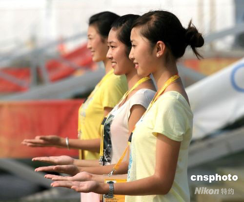 图:奥帆赛颁奖礼仪小姐冒酷暑排练(2)