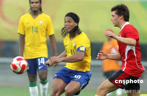 图:奥运男足小组赛 巴西队1:0小胜比利时