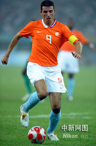 图为荷兰队场上队长著名球星罗伊-马凯正在带球突破。
