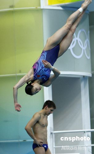 跳水梦之队试水“水立方” 郭晶晶吸引目光