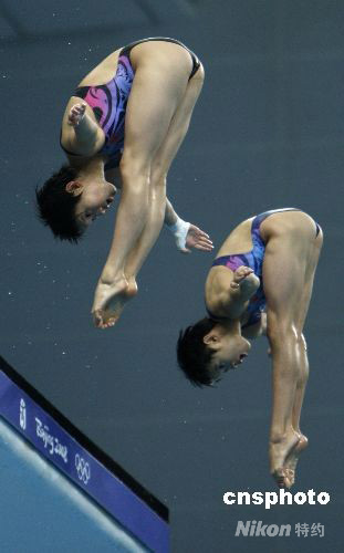 跳水梦之队试水“水立方” 郭晶晶吸引目光