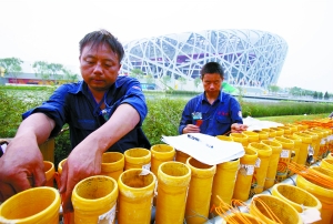 按标准,用于鸟巢燃放的烟花,抽检率高达50%,即每两个成品出厂前,其中一个必须当场试放。试放成品过关,另一成品才能装箱。(记者 王姝)