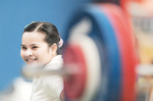 中国女子举重运动员陈燮霞(上图)和中国女子射击运动员杜丽(下图)肩负中国奥运代表队首日比赛夺金的重任