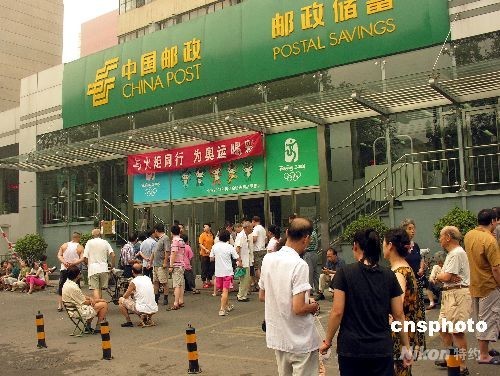 2008年8月8日,北京邮政发行奥运开幕首日封、纪念封一套。许多集邮爱好者一大早就聚集在邮局门前,排队购买。中新社发 庄浦明 摄