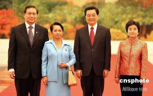 图:胡锦涛夫妇欢迎菲律宾总统阿罗约夫妇