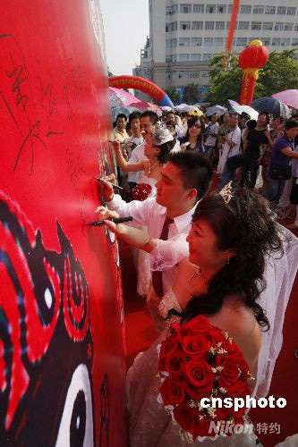 图:浙江瑞安举行集体“奥运婚礼”