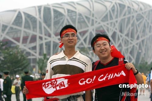 8月8日,第29届夏季奥林匹克运动会即将于晚上8点揭幕,前来观看开幕式的观众盛装出席,一派喜庆氛围。中新社发 武仲林 摄