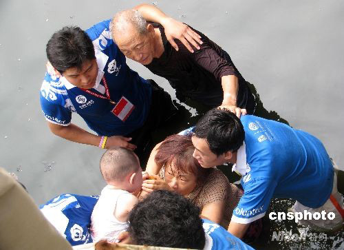 图:汽车落水 北京奥运志愿者奋勇相救(2)
