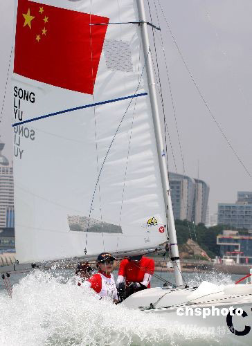 8月8日,中国英凌级帆船的3名选手在最后一次训练中,技术发挥正常,只待8月9日正式比赛日的到来。 中新社发 赵振清 摄