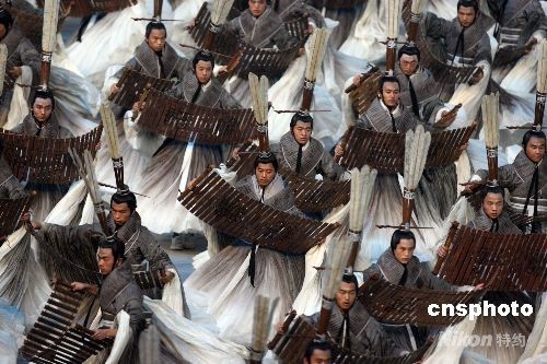8月8日晚,第二十九届奥林匹克运动会在北京开幕。由中国著名电影导演张艺谋指导的北京奥运会开幕式文艺演出节目中的核心部分——《美丽的奥林匹克》,全部内容围绕一幅“中国古代画卷”卷轴的开启展开。中华汉字是世界上最古老的文字之一,古老的汉字承载着中华文明久远而深邃的历史,在这一篇章的表演中,展现了中国汉字的变化魅力。孔子的三千弟子手执竹简漫漫歌颂,缓缓步入场地,经典名句响彻全场。中新社发 任晨鸣 摄