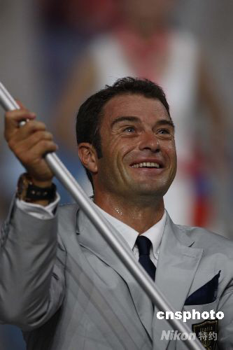 图为入场仪式上意大利奥运代表团旗手皮划艇名将罗西。中新社发 杜洋 摄