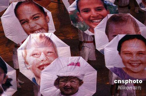 图:奥运开幕式上2008个儿童"欢笑"迎宾朋