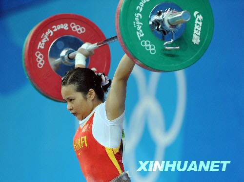 中新网8月9日电 首次参加奥运会的中国运动员陈燮霞以抓举95公斤,挺举117公斤,总成绩212公斤破奥运纪录,并夺得奥运女子举重48公斤级金牌。这也是中国军团在2008年奥运会上的首枚金牌。
