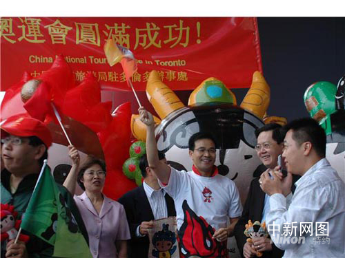 中新网温哥华8月8日电 “080808”,这组吉祥数字把加拿大百万华人和各界人士的心紧紧地联系在一起。当地时间8月8日晚上8时,温哥华几十家新老侨团在大温哥华国际彩灯节现场,共同组织“迎北京奥运——狂欢歌舞晚会”,三、四千名各族裔民众欢聚一起共庆奥运盛举。