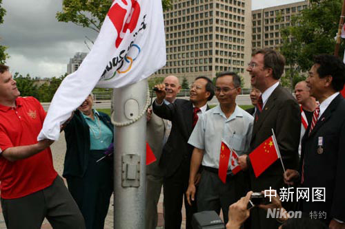 与北京同步,加拿大首都渥太华市的华人和加拿大朋友对奥运会的开幕感到非常兴奋。当天中午12点整,在通过电视转播看过奥运会开幕式后,就在位于市中心的渥太华市政厅外面,举行了隆重的北京奥运会旗升旗仪式,绘有大红“中国印”的北京奥运会旗高高飘扬在渥太华上空。渥太华市市长拉里·奥伯里恩、加拿大联邦政府环境部长约翰·布莱德、人力资源和社会发展部长芒特·施尔伯格、中国驻加拿大大使兰立俊、渥太华华人联合总会会长邓家昌等出席了升旗仪式。(完)