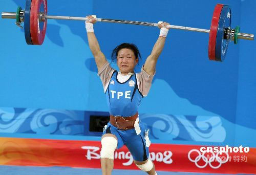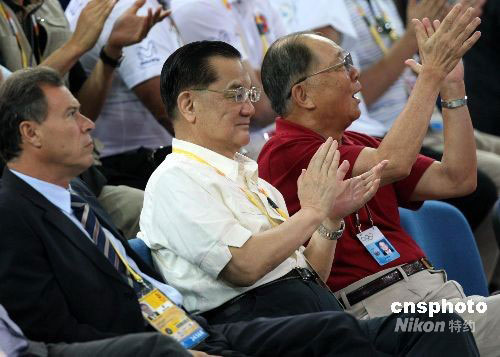 8月9日上午,中华台北选手陈苇绫在北京奥运会女子举重48公斤级决赛中获得铜牌,中国国民党荣誉主席连战到场助威。中新社发 任晨鸣 摄