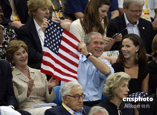 图:布什、陆克文“水立方”观战 为自家选手助阵