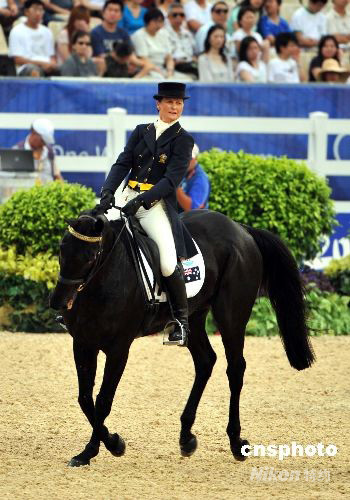 八月十日,北京奥运马术三项赛个人赛之盛装舞步环节的赛事在香港沙田奥马赛场结束。澳大利亚马术队在这一环节积分暂时领先。中新社发 邓庆乐 摄