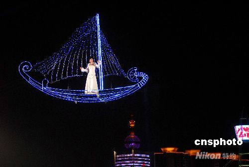 图:青岛奥帆赛启动 李丽珊乘飞帆点火炬(2)