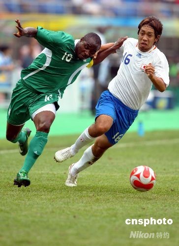 图:奥运男足 尼日利亚对日本连拉带拽