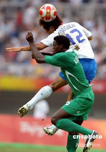 图:奥运男足 尼日利亚对日本连拉带拽