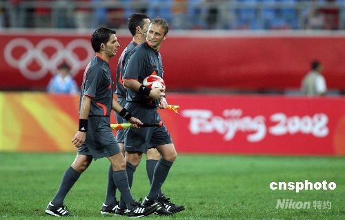 比赛结束后,裁判退场。中新社发 张宇 摄