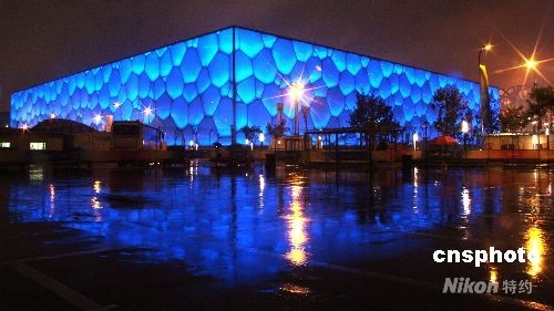 图:雨夜“水立方” 映耀“五彩缤纷”(4)